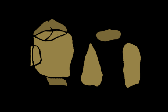 Very much dilapidated, D24 is the middle triplet between the larger D25 and smaller D23, with which it forms a triangle. It is in the bush outside Bronneger, near D21 and D22, and the five were likely part of a larger complex, most of which is now lost.